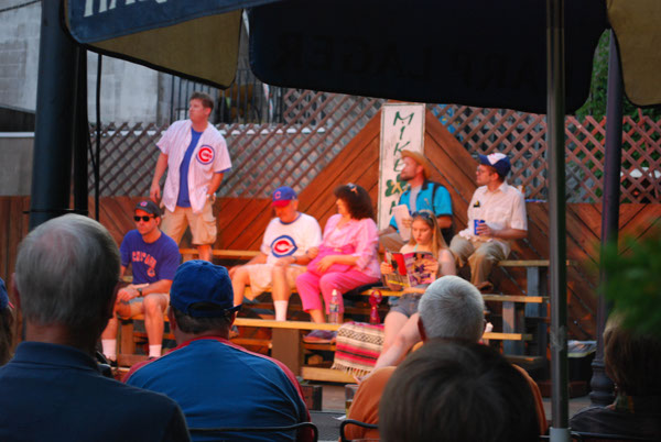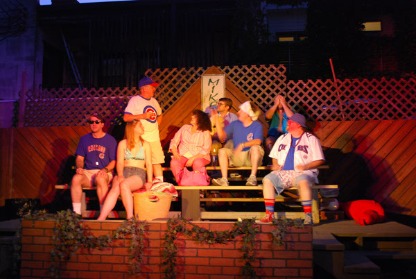 The play takes place in the bleachers of Chicago's Wrigley Field, where a bunch of Cubbie (Chicago Cubs) fans are watching a game between the Cubs and arch rival, the St. Louis Cardinals, on a summer afternoon. Most of them have been gathering here for some time and know each other; even if they might not necessarily like or tolerate each other. Beer is being drunk, hot dogs and frosties are being eaten, and friendly (not always) wagers start to take on increasing importance.