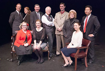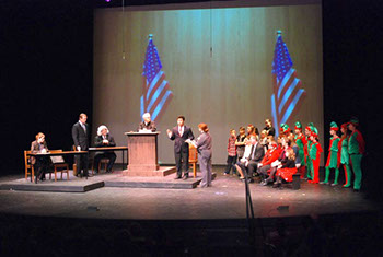 Bah Humbug Productions presented Miracle on 34th Street at Parkland College Theatre in December 2013. This classic Christmas tale, adapted by Mountain Community Theater from the novel by Valentine Davies and based on the movie of the same name, is one of the most loved stories of the season. It illuminates the Christmas spirit through the eyes of young Susan Walker, who believes that Santa Claus really does exist. It tells of Kris Kringle, an old man in a retirement home, who gets a job working as Santa for Macy’s in New York City. Kris unleashes waves of good will with customers by referring parents to other stores to find exactly what their child has asked for. The company vocational counselor sees him as deluded and plots to have him committed to a psychiatric hospital. Kris ends up in a court competency hearing with one little girl’s belief in Santa at stake.